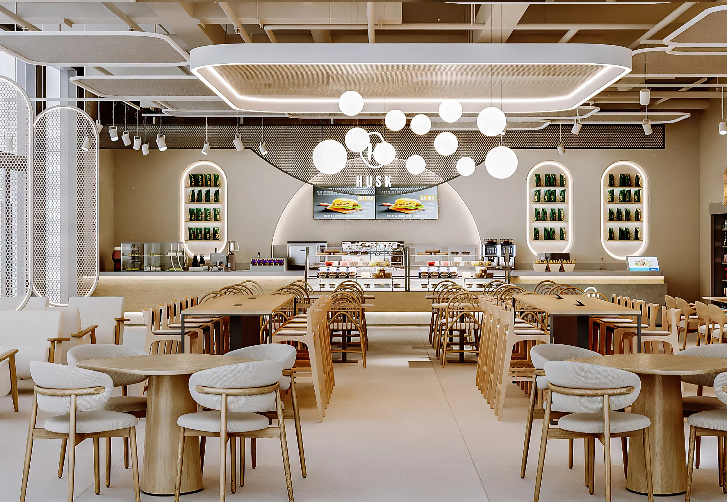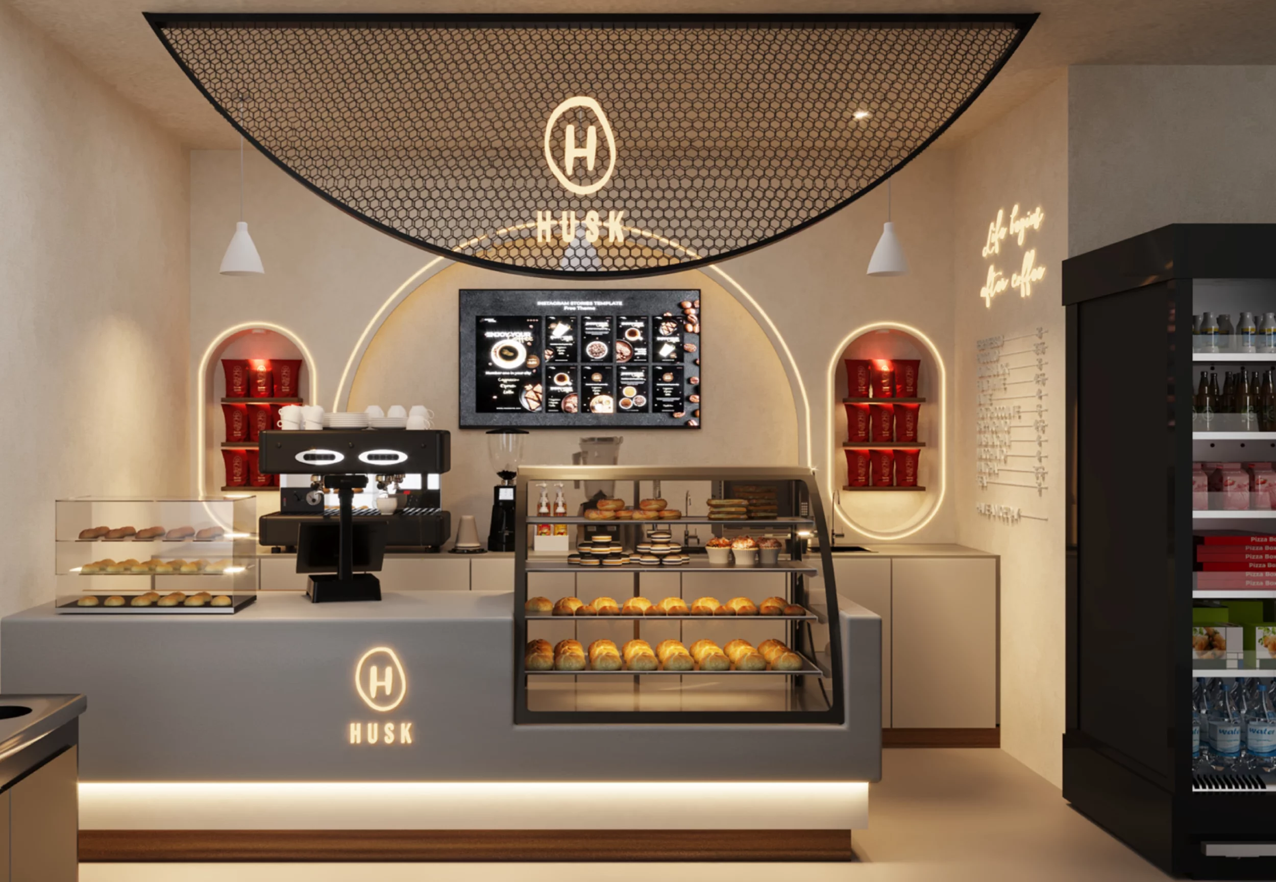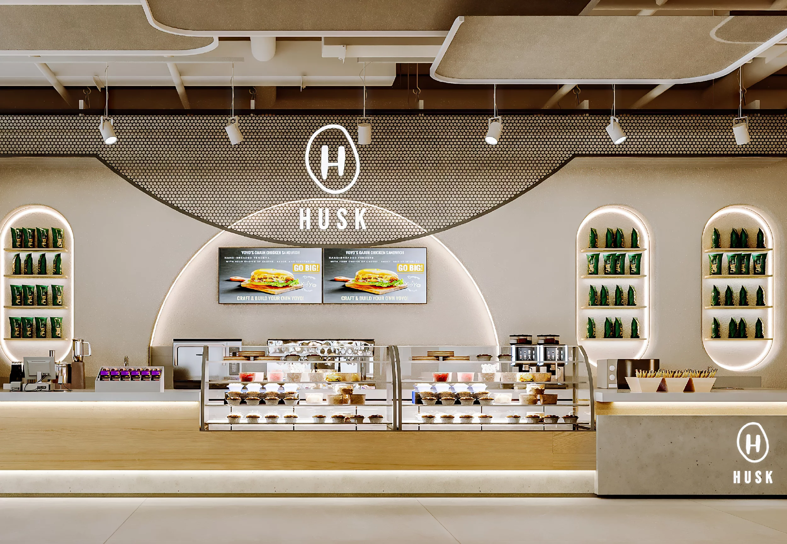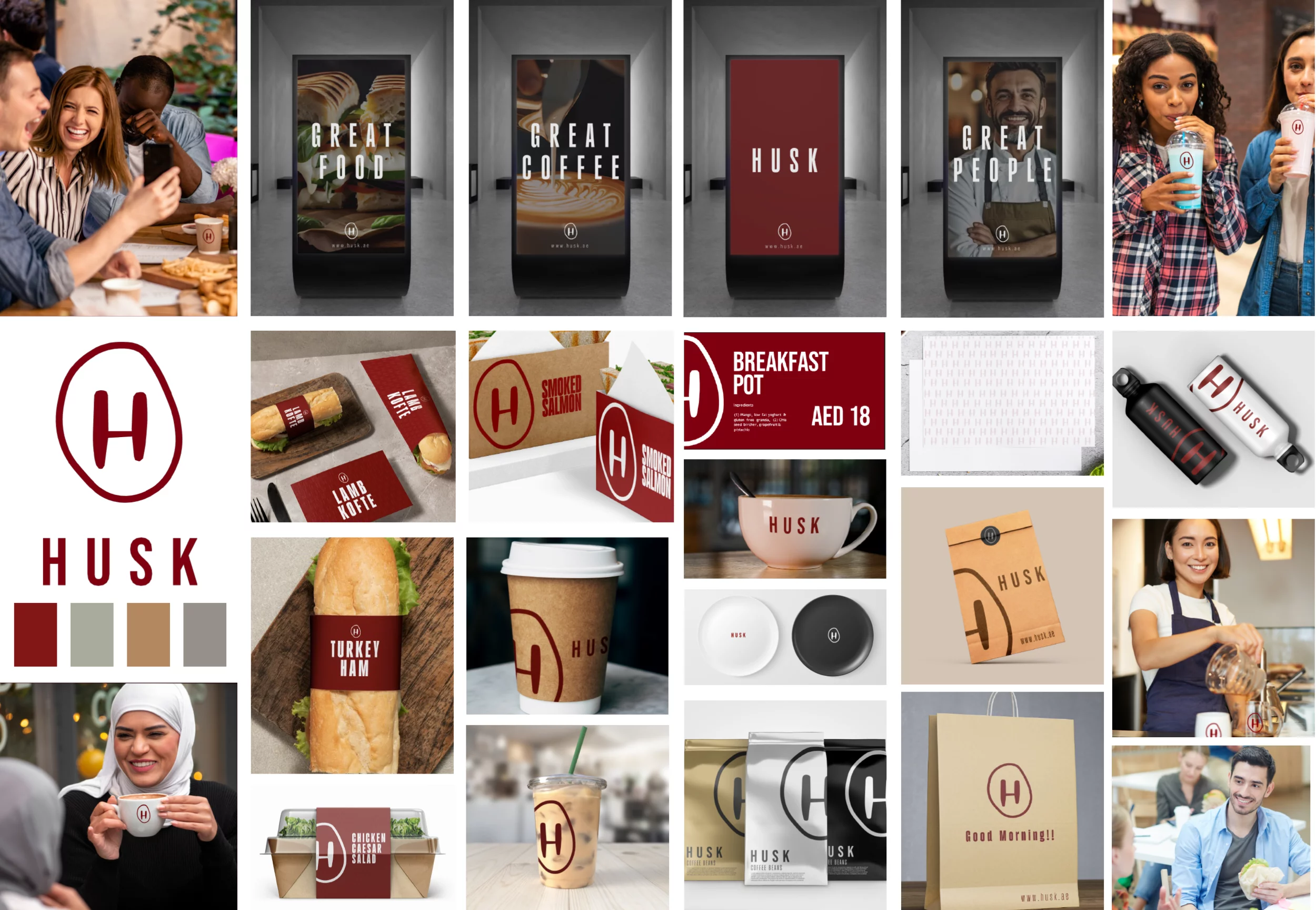 ADNH Compass are one the UAE’s largest food-services and catering providers. With some very ambitious growth plans, they were looking to replace their Deli Marché brand, (a coffeehouse chain operating in hospitals, medical centres, shopping malls, etc) with a new concept called ‘HUSK.’ We were asked to find a way to produce a completely new and premium retail brand for a launch event in just a matter of weeks.