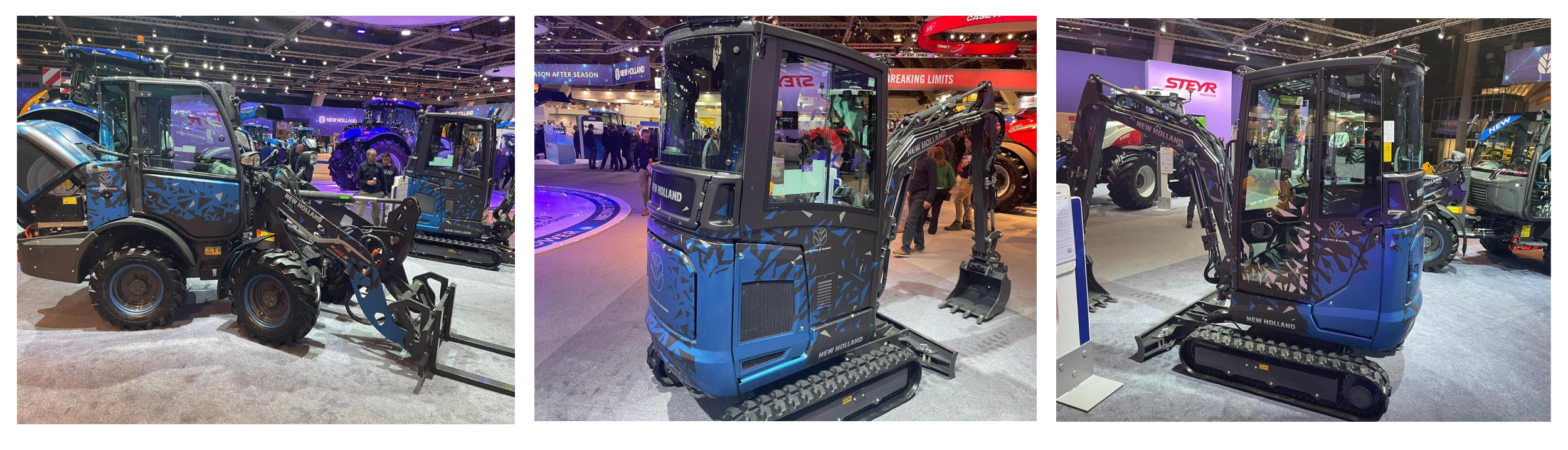 The New Holland brand was enhanced greatly with the creation of two new show stars for Agritechnica. These were the New Holland W40X Tractor and E25X Excavator. Both machines wore the new livery and drew significant attention. This reinforced the brand’s leadership in the category.