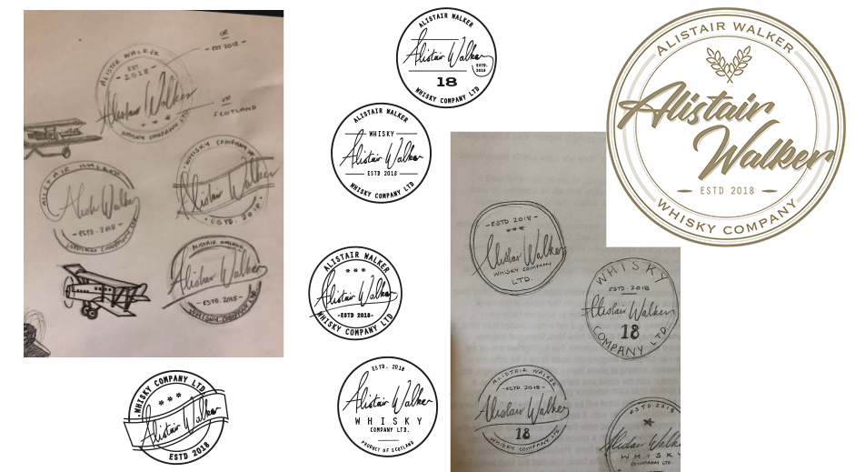 We created a range of other items for Alistair including a bespoke age statement, wallpaper-like wraparound for the whisky tube of the whisky and a crest-like logo for the brand identity.